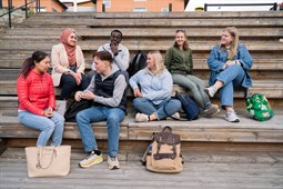 Läser bok sittande i mysiga säckar