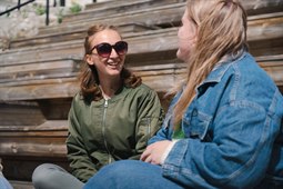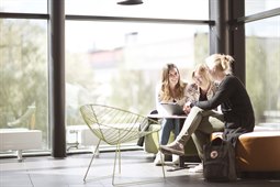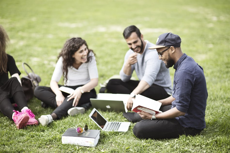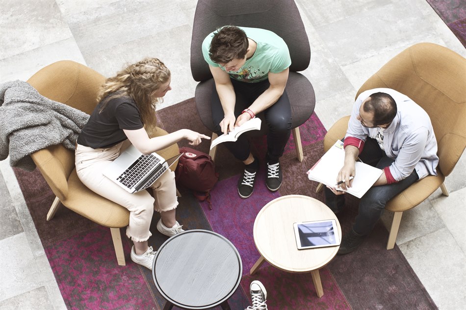 Läser bok sittande i mysiga säckar