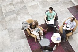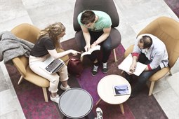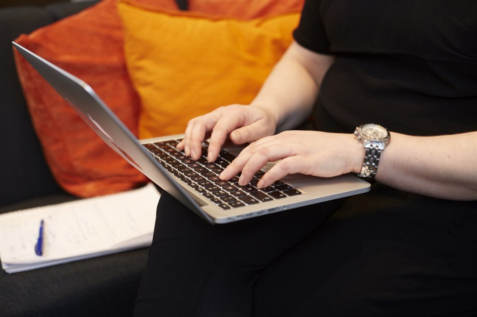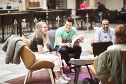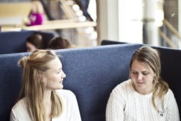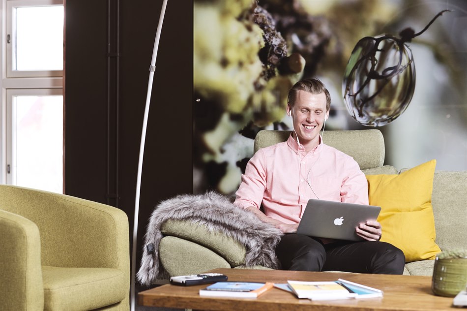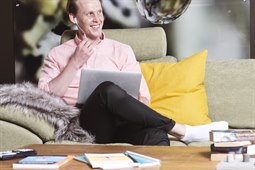 Läser sittande i soffa