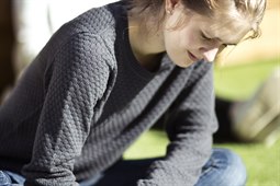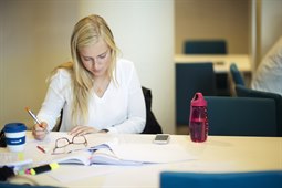 Läser sittande på boll