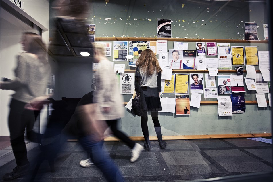 Student vid anslagstavla