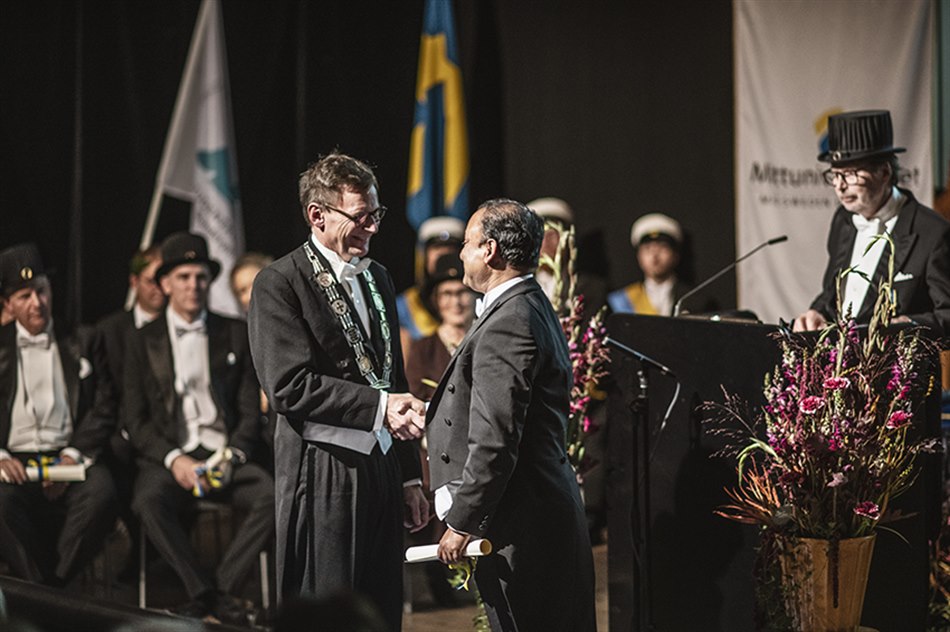 Vid högtidsceremonin den 6 oktober promoverade vi fyra hedersdoktorer och 13 doktorer samt installerade två nya professorer. Vi delade ut fem vetenskapliga och pedagogiska priser samt två förtjänstmedaljer.