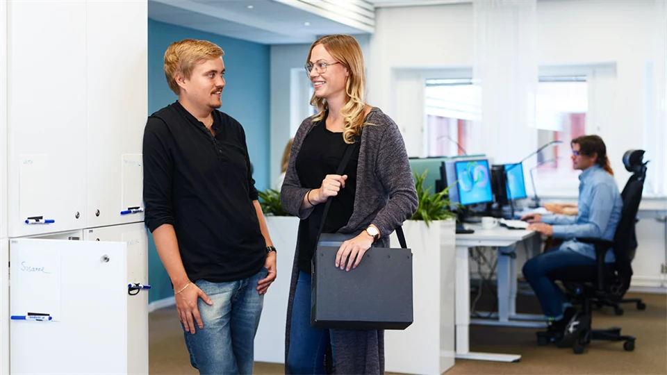 Du har möjlighet att arbeta på plats hos oss i trevliga lokaler men det finns även möjlighet att distansarbeta viss tid. På plats rekommenderar vi avbrott i arbetet då och då för pingis, bordshockey eller bara en social fika. För övrigt erbjuds du samma hälsofrämjande villkor som övriga anställda vilket bland annat innebär friskvårdstimme, gym på kontoret och medverkan i olika friskvårdsaktiviteter.